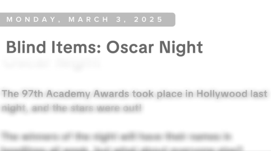 Well, luckily we had feet on the ground all night to hear what the stars were saying. So, without further ado, here are the ASS News blind items (and reveals) from Oscar night:
