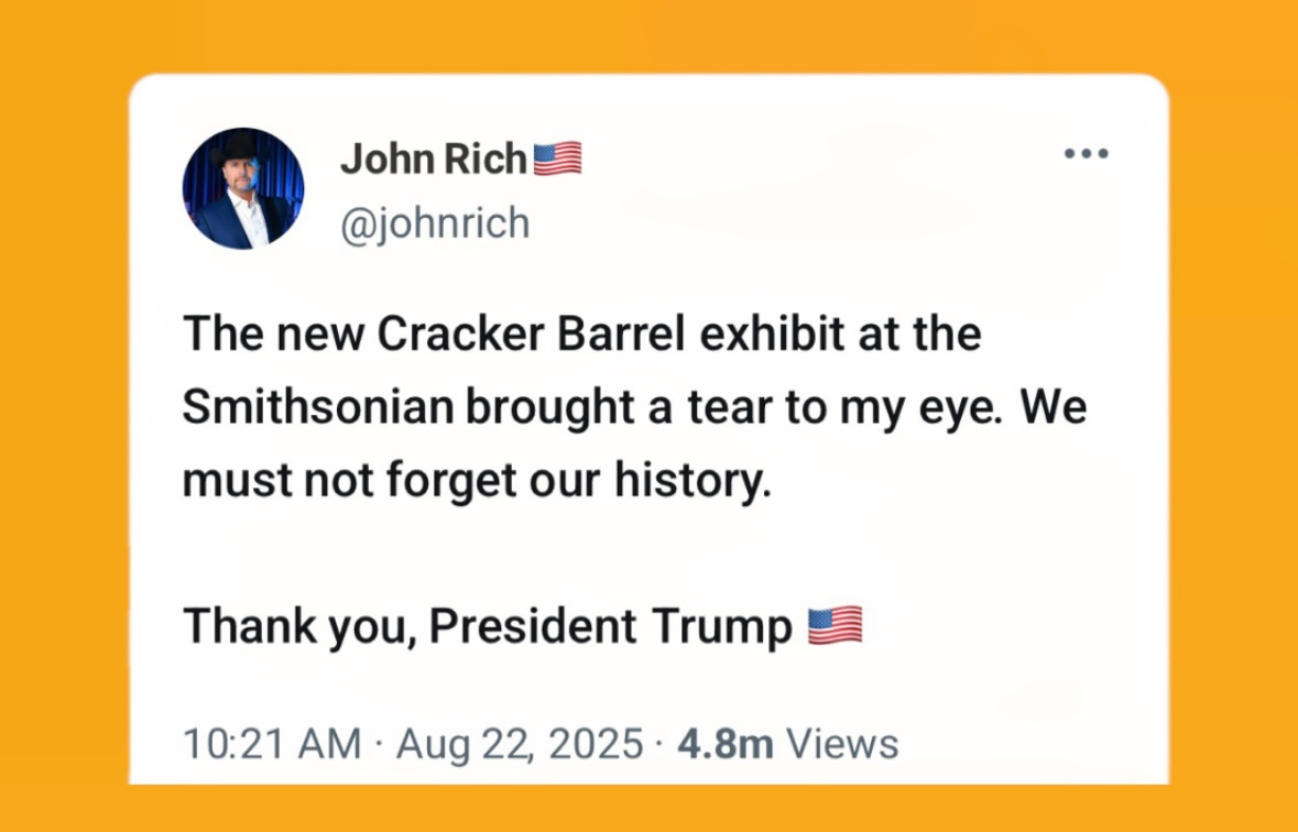 With President Trump rewriting history via Smithsonian museum, it was only a matter of time before an exhibit was implemented to honor our most recent conservative hero: the Cracker Barrel guy.