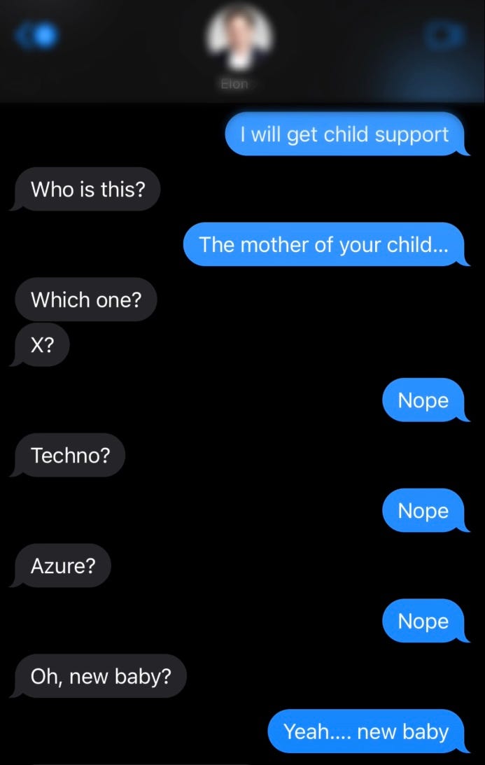 The texts span long periods of time and pretty substantially make the case that Musk is the father to her child.