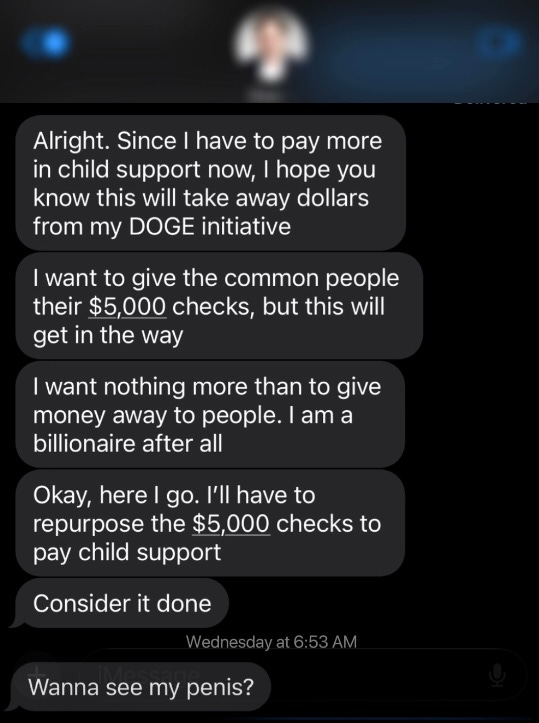 In texts released by the most recent woman to mother one of Elon Musk’s children, Musk revealed that we may not be receiving those $5,000 DOGE checks.