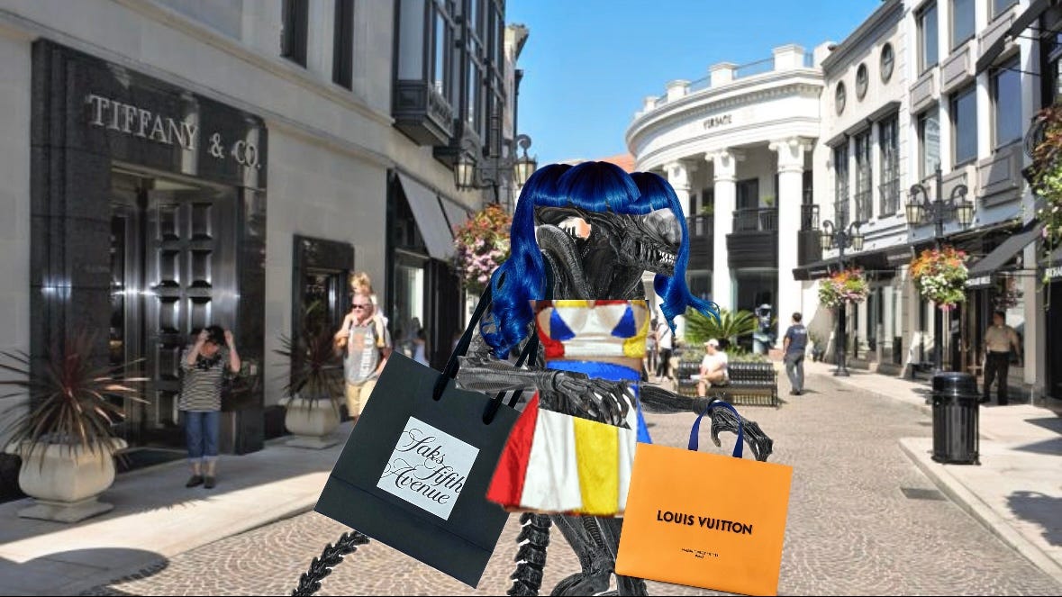 “To Rodeo Drive. I’ve got some Earth shopping to do,” said the xenomorph as he thumbed through Katy Perry’s various credit cards.