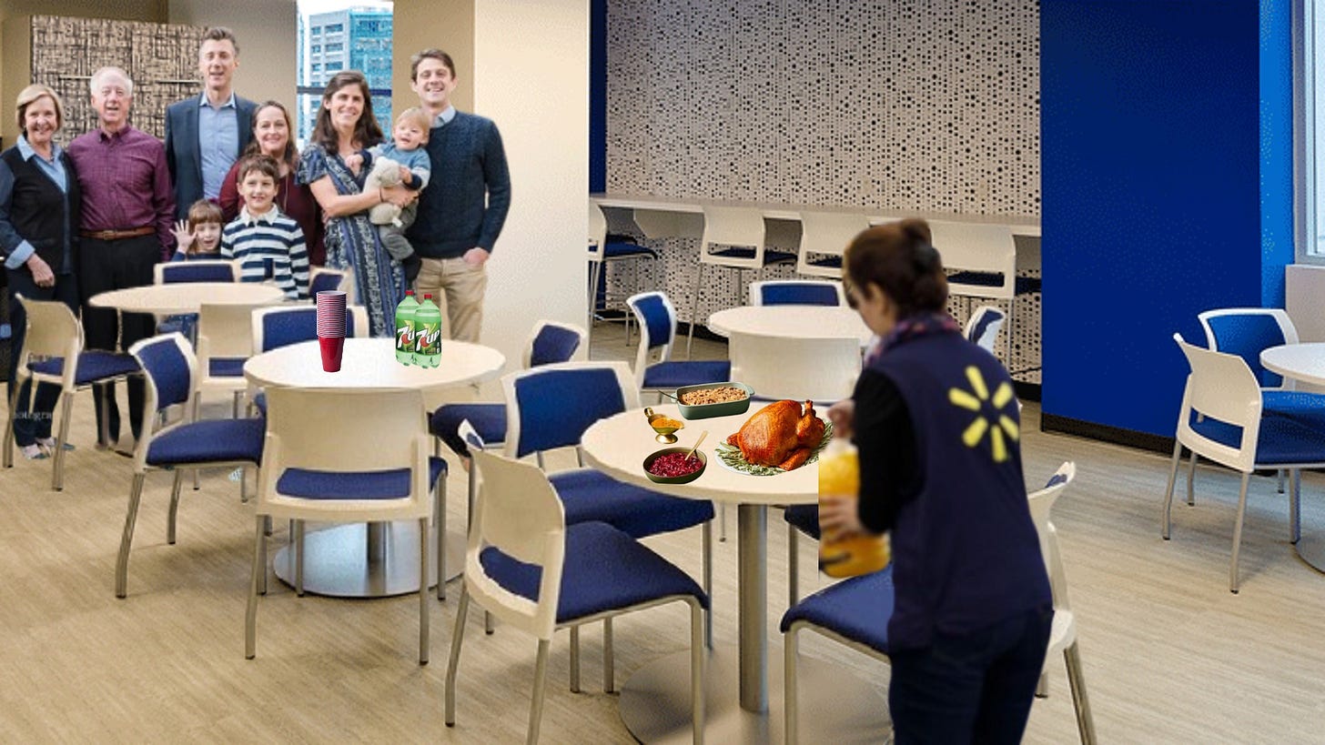 Walmart is revolutionizing the Black Friday shift by implementing a new, heartwarming policy: Walmart employees may now use the breakroom to host their family for a Thanksgiving dinner during their 10-minute break.