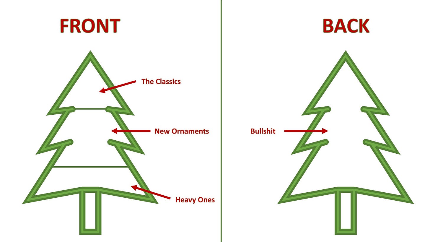 Despite the tension, she’s not wrong! In fact, many surveys and studies show that the front of the Christmas tree is "prime real estate," and should be reserved for only the best and most nostalgic ornaments.
