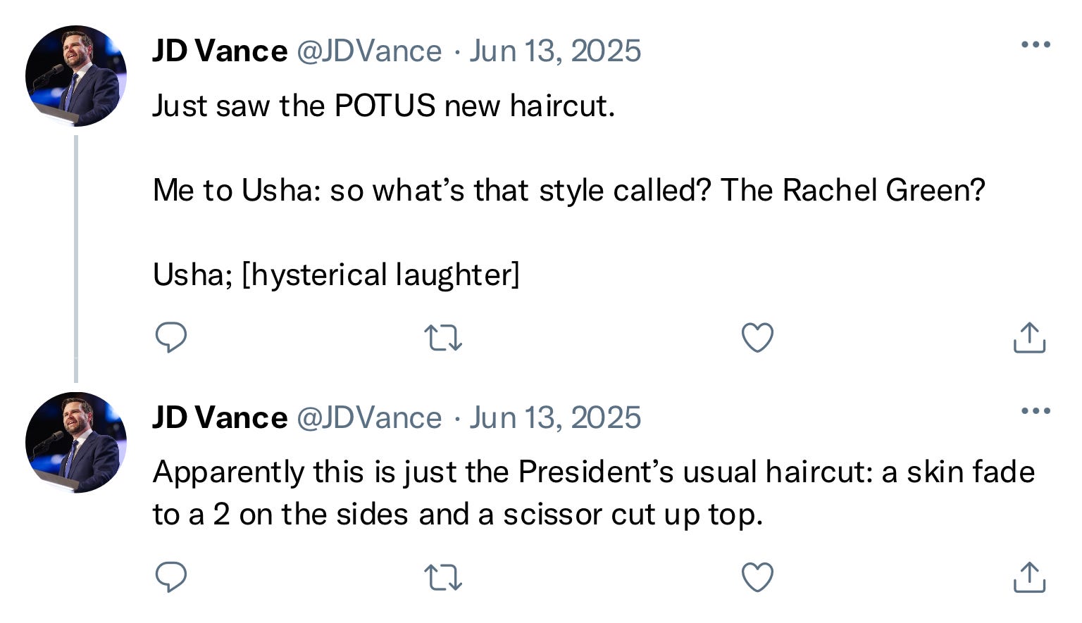 Second, the haircut is similar to the President’s usual style: a skin fade to a 2 on the sides and a scissor cut up top.