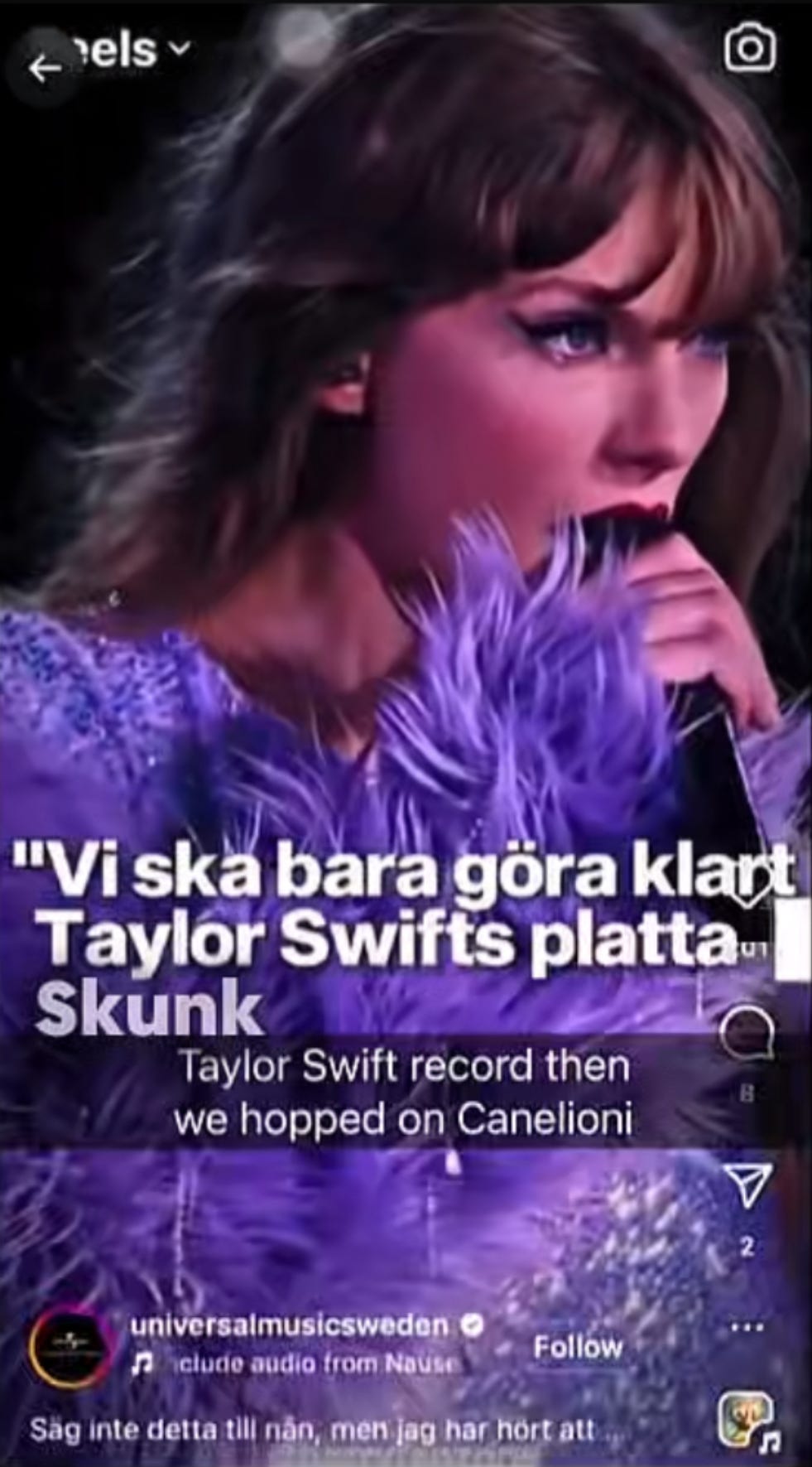 Fans (eagle-eyed ones) also noticed that about a month ago, the Universal Music Sweden Instagram account shared a video that interviewed the Swedish DJ Nause, where he let it slip that Swedish music producer Erik Arvinder is working with Swift currently on her new album Skunk.