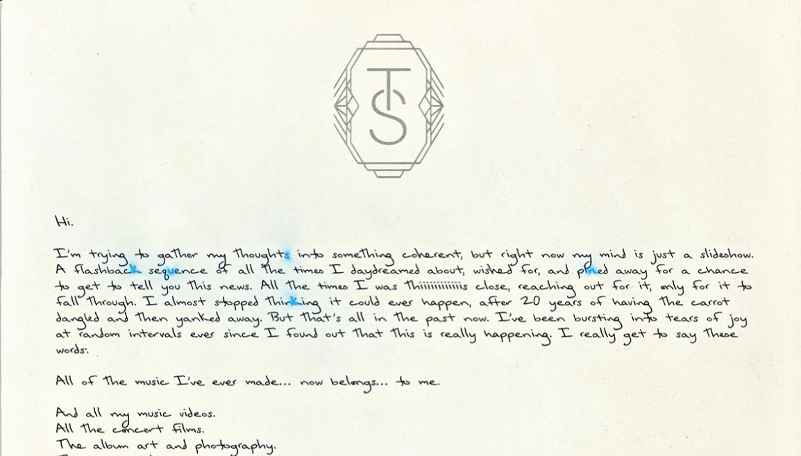 The announcement on her website elated fans, as they have followed the story every step of the way, rooting for Swift to rightfully gain ownership and control of her music.