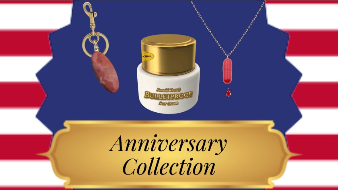 Well, now Trump is launching an “Anniversary Collection” to commemorate the one year anniversary of the attempt on his life.