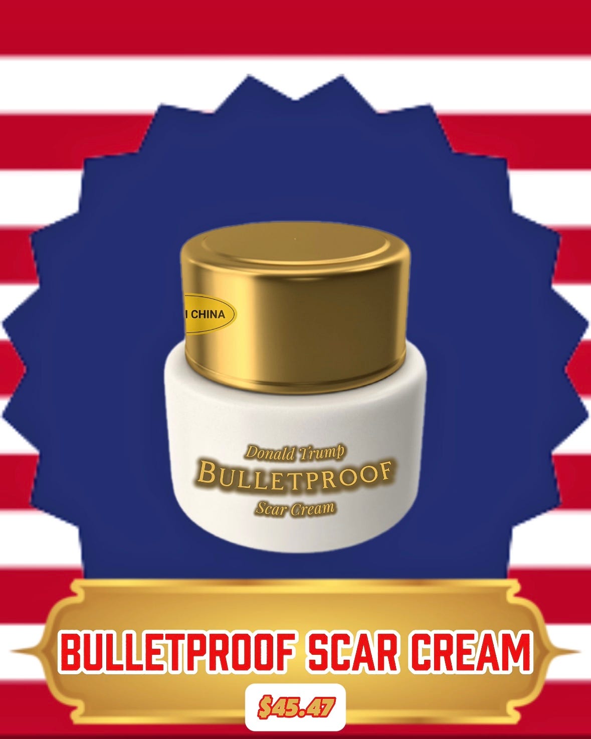For those people, there’s now Donald Trump Bulletproof Scar Cream™ - the best scar cream on the market and the only scar cream that’s patriotically priced at $47.45.